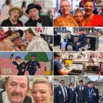 Montage of photos from various Veterans events, including the photo of Maria Manchester who came to Crow Wood Court, Burnley, to entertain the residents.